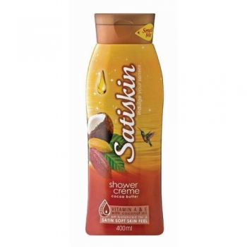 Satiskin Shower Gel Cocoa Butter : Satiskin Cocoa Butter Shower Creme has a rich pH balanced formula that gently cleans skin. Take your moment to re-energise in an invigorating shower. Cleanse, fragrance & indulge with Satiskin shower gels